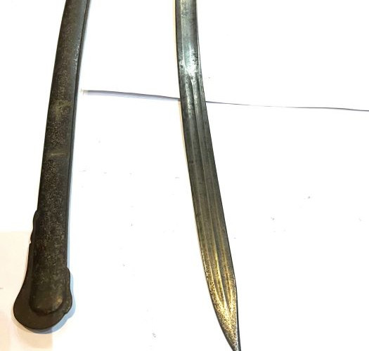 Sable italiano de oficial, con el escudo de Saboya en la hoja, utilizado en las guerras civiles que se sucedieron en Argentina y Uruguay. CIRCA 1860